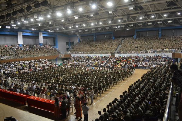 9月10日晚,冰球官网体育馆内华灯璀璨,歌声飞扬,2015年迎新生暨庆祝第三十一个教师节文艺晚会在这里隆重举行。常务副校长李武修、学生工作分管领导、71613承训部队官兵以及学校院直部门和各二级学院负责同志与2015级全体新生一起观看演出。