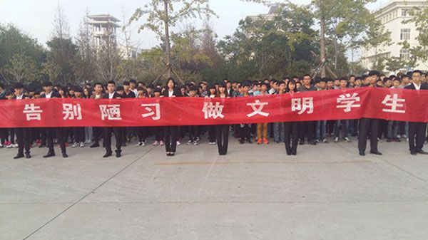 为加强校园精神文明建设,进一步提升全体师生的精神文明修养,营造健康向上的文化氛围,增强全体师生的文明自律意识,2015年10月21日,由珠山学院举办的“告别陋做文明学生”学生文明修身签字仪式在知行楼前举行。活动学工秘书宋大帅老师主持,副院长刘松芝、学院全体辅导员及珠山学院全体学生参加了此次启动仪式。