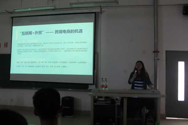 报告共分为四部分,即“互联网+”是什么;跨境电商的机遇;跨境电商平台及流程;我们能做什么?苏秘书长借助视频短片,从诺基亚的兴衰和小米的发展史入手,引出传统行业与互联网行业的区别,从而进一步阐述了顺应时代发展潮流的互联网+。在报告会过程中,同学们不仅积极参与、踊跃回答苏老师提出的有关“互联网+关键词、互联网+企业塑造,跨境电商平台”等问题,还很用心的做笔记,现场气氛轻松活跃,听众纷纷表示大有收获。