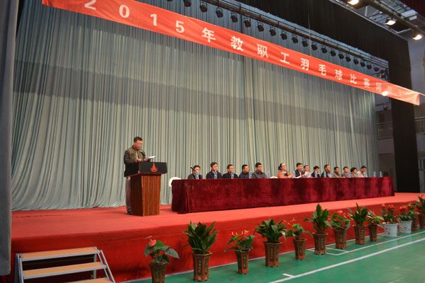 11月21日上午,冰球突破豪华版官方网站2015年教职工羽毛球团体赛圆满落幕。校工会主席、大赛组委会主任刘志强,校工会副主席、大赛组委会副主任高菲,基础教学部副主任、大赛组委会副主任宋光春,组委会委员及裁判员、运动员代表出席闭幕式。