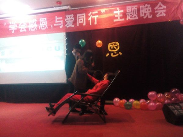 为加强对学生的感恩教育,唤起学生内心深处的善良本性与感恩之心,珠山学院于2015年12月3日晚,在知新楼一楼西配举行了“学会感恩,与爱同行”主题晚会。