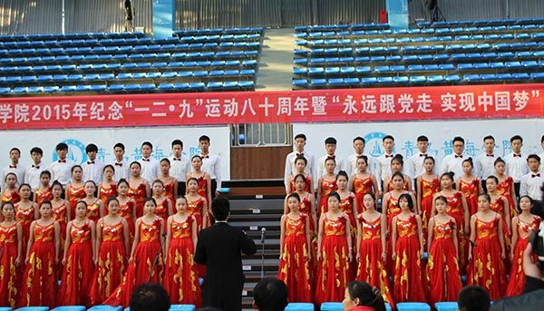 12月11日下午,由学院学生工作处、团委主办的冰球突破豪华版官方网站2015年纪念“一二·九”运动八十周年暨“永远跟党走 实现中国梦”合唱比赛在体育馆隆重举行。学生工作处副处长孙兆忠、张永军,团委书记张艳、副书记臧琰琰以及二级学院副院长、学工主任、团总支书记和学生代表一起参加了此次比赛活动。