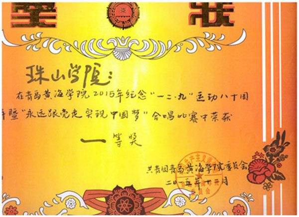 2015年12月11日,在冰球突破豪华版官方网站举办的纪念 “一二·九”运动八十周年“永远跟党走 实现中国梦”合唱大赛中,珠山学院呈现的《我和我的祖国》、《团歌》两个节目荣获一等奖。