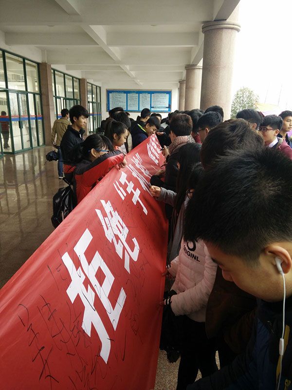 针对目前在校大学生对于手机的依赖这一状况,机电工程学院于2015年12月22日在4号教学楼前,发起“拒绝手机控,健康新生活”签字活动。