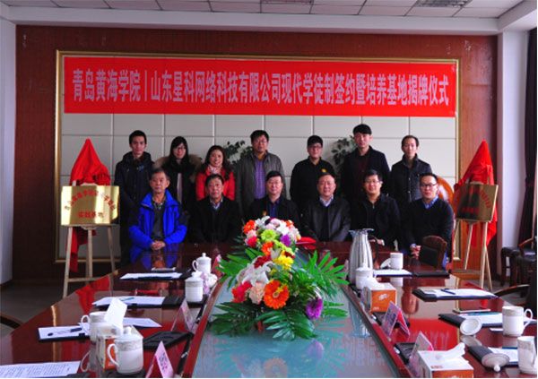 2015年12月22日,山东星科网络科技有限公司与冰球突破豪华版官方网站现代学徒制人才培养签约暨培养基地揭牌仪式在冰球官网办公楼201会议室隆重举行。出席会议的有山东星科网络科技有限公司董事长陆小珊、学徒制项目经理刘杰,冰球突破豪华版官方网站常务副校长李武修、副校长梁希泉、影视艺术与教育学院常务副院长孙在福、教学副院长周萍、学科带头人李世林教授等。