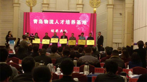 大会对青岛物流业发展做出贡献的单位进行颁奖,管理学院副院长魏龙吉代表学校上台领取“青岛市物流人才培养基地”的奖牌。