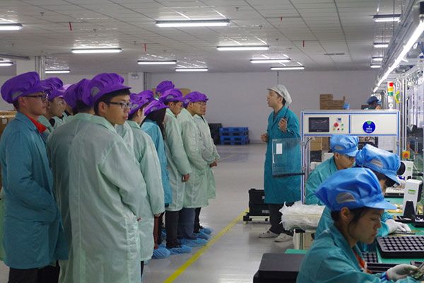 首先校企双方组织学生参观了海信手机的生产车间,企业安排相关技术人员对车间的生产流程、机械设备进行了详细的了解。随后,企业组织学生到培训室,为学生分别作了两场精彩的报告。第一场报告的报告人是公司工艺与研发部刘经理。刘经理针对本行业的发展历程、现状和发展趋势等三个方面为同学们作了详细的介绍,他提到现在的制造业正由半自动化向全自动化和智能化转变,未来社会将面临劳动力剩余的危机,与此同时,将来对人才素质的要求会更高,学校面临的培养任务也越重。第二场报告是公司人力资源部王顺经理就“员工职业规划与晋升渠道”方面进行的讲解。王经理结合自己的“生命地图分享”和职业发展体验为同学们详细讲解了本公司的员工入职条件、工资待遇以及个人发展空间。报告期间,学生就专业技术知识和公司的人才招聘方面的问题进行了提问,企业领导都耐心的进行了回答。