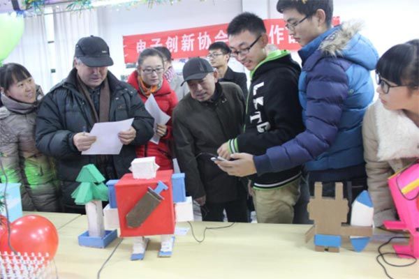 面对教授和老师们提出的问题,15级新生详细讲解和展示了自己的作品,老师们对参赛者精心制作的作品做出了高度评价,同时也对作品提出了极富建设性的意见。最后,刘院长作总结讲话,希望广大同学利用好实验室的平台,学以致用,团结协作,努力提升自身水平,充分展现大学生的创新精神。