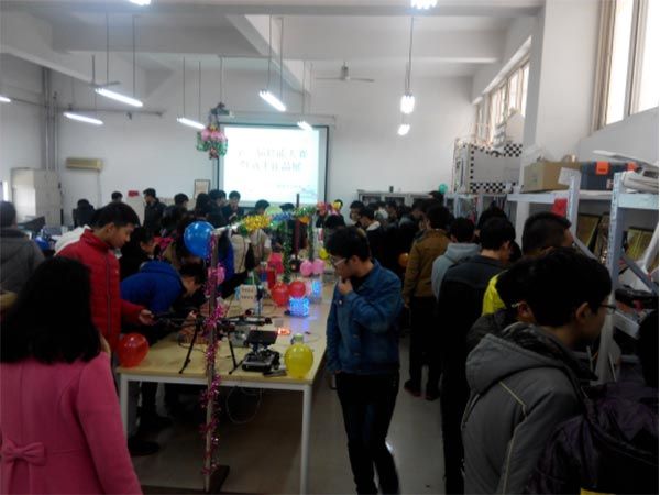 12月25日,机电工程学院在知行楼101实验室举办了机电工程学院第二届机电产品技能大赛暨新生作品展。本次大赛共收集来自机器人创新工作室2015级新生作品30余件,包括音箱、音乐频谱、红外洗手器、光立方等几类作品。同时工作室还展出了一部分老生作品,包括避障机器人、双足机器人、飞行器、搬运车等。本次活动参赛人数、参展作品、组织规模均超过上一届。活动邀请了机电工程学院刘纪新院长、姜宝华副院长和学院的专家教授及专任老师作为评委前来对作品进行评比打分。