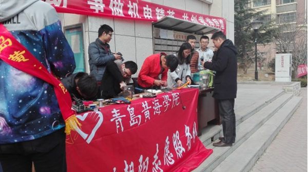 312日一大早志愿者们就到了活动现场,一切非常有序的开展。有的志愿者耐心的向社区居民解释活动的内容与目的,有的志愿者仔细的将损坏电器进行登记,有的志愿者认真对损坏电器进行检测和维修,还有的志愿者热情的帮助老师搬运损坏小家电……..