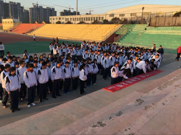 在签名过程中,同学们积极主动的在“弃今夕手机,赢他朝无悔”的条幅上签下自己的名字。整个活动如火如荼,井然有序的进行着。