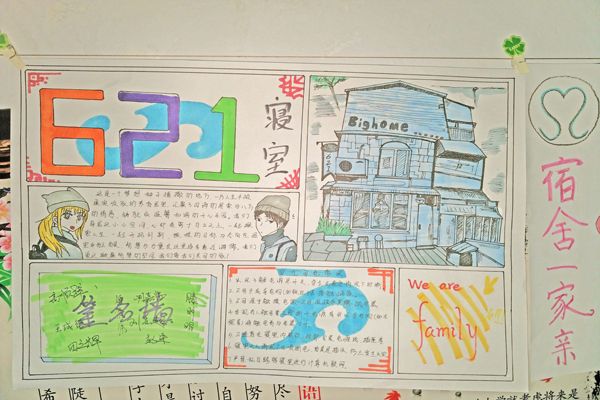 此次手抄报展览,同学们以各宿舍为单位,利用周末时间全体舍友合作完成自己宿舍的作品,不限形式,作品要求体现各宿舍的团结、特色与活力。手抄报于3月28号即本周一上午上交,并于当天挑选优秀作品悬挂于级部走廊进行展览。此次展览活动中,同学们热情高涨,为能展现自己宿舍的风采和活力而积极参加,充分体现了团结友爱的宿舍合作精神。展出的作品或幽默风趣,以各个卡通形象代表宿舍同学;或创意无限,采撷春天的枝桠进行报面装点;或将自己宿舍照片粘贴于报面,温馨无限。