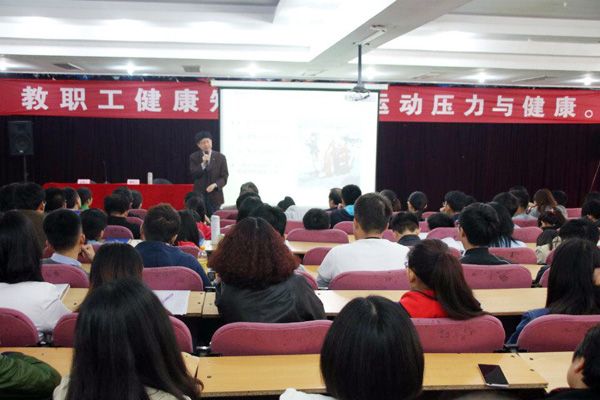 为普及健康和养生知识,预防疾病,增强教职工自我保护意识,促进教职工的身心健康,4月21日下午,应学校邀请,中康国际体检中心马峰奇院长在知新楼一楼东报告厅为教职工代表作《运动压力与健康》知识讲座。校长助理、综合办公室主任马永来与教职工代表聆听讲座。讲座由工会副主席高菲主持。