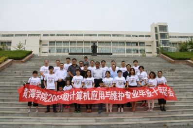 03级计算机应用与维护的毕业校友在一号教学楼544教室(原教室)进行报到签名,简单的交流与合照后,校友们怀着激动的心情来到会议室,校友座谈会正式开始。首先副校长杨春联发表讲话,以幽默风趣的语言为已经毕业十年的校友们讲述了学校十年来的变化和发展,对作为第一批统招毕业生的校友们不忘母校表示感谢。然后校友们在自我介绍时表示了对母校、教师培养的感激之情,他们表示黄海学院的教育方式和教育理念在自己的工作中发挥着重要作用,校友代表并向学校赠送了纪念品以示感谢。最后学校领导和校友们一起参观了学校及学校新校区虎山校区,并一起在孔子铜像前合影留念。