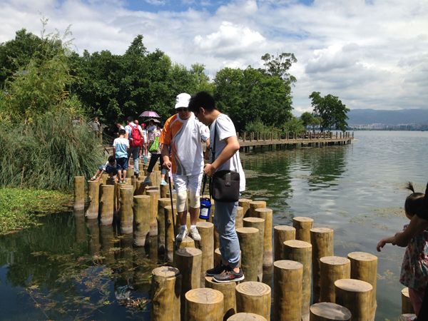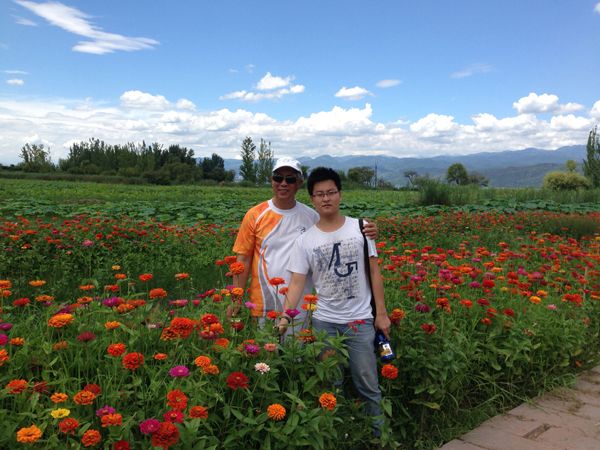 丁元驰老人与陈松同学在西昌湿地公园合影留念
