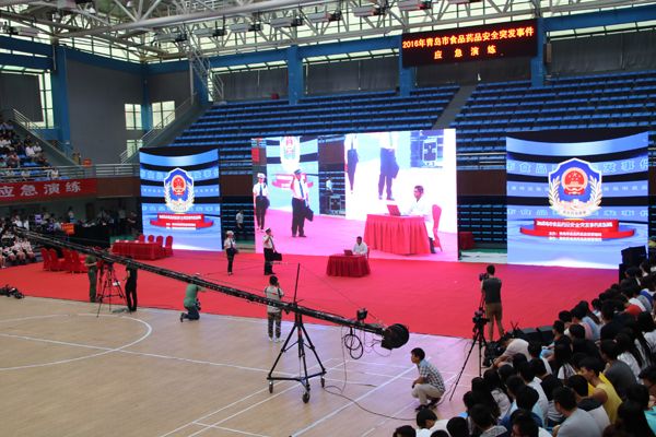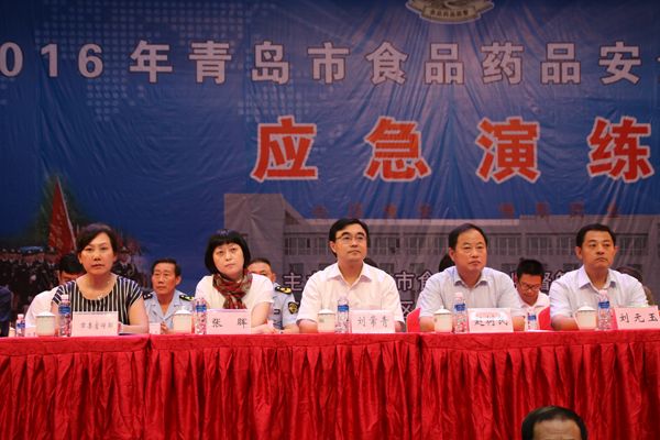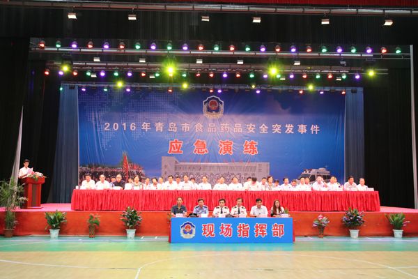 为全面锤炼、检验新体制下食品药品监管队伍的应急处置能力、各部门之间的协调配合能力和食品药品安全综合保障能力,2016年9月13日,2016年度食品药品安全突发事件应急模拟演练在青岛黄海学院体育馆举行。省食品药品监管局李超群副局长出席了本次演练活动,市政府应急办、市食安委相关成员单位有关负责同志,各区市政府分管领导,各级食安办(食品药品监管局),黄岛区有关部门及单位负责同志等2300余人观摩了演练。本次演练由市食安办、市食品药品监管局主办,黄岛区人民政府承办,黄岛区食安办、黄岛区食品药品监管局、胶州市食品药品监管局、黄岛区卫生和计生局、市公安局黄岛分局、黄岛区机关事务管理局、青岛黄海学院、青岛西海岸医疗中心等协办。