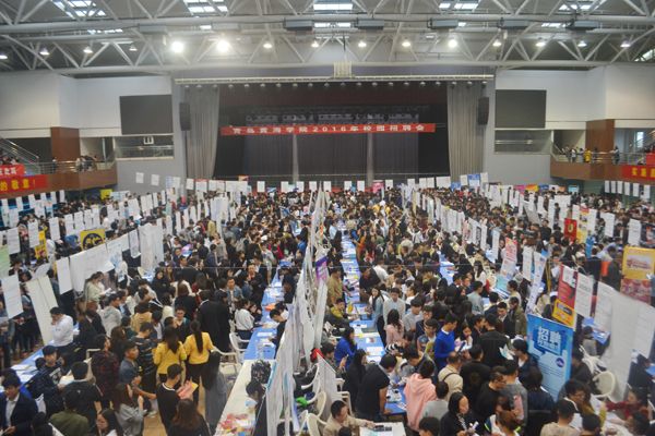 10月21日上午9时,虽然恰逢降雨、降温天气,但在冰球突破豪华版官方网站体育馆里却是人气火爆,场面热烈,2016年冰球突破豪华版官方网站校园招聘会在这里准点开幕,一场用人单位和求职学生之间的“擂台赛”在这里精彩上演。