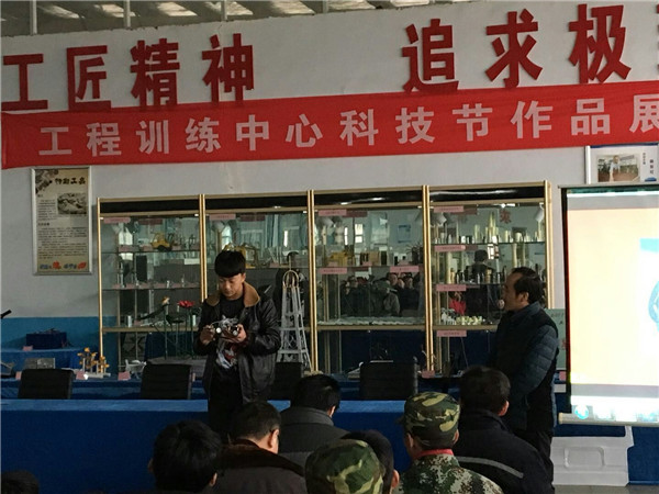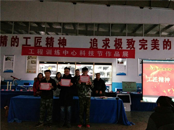 2018年新年伊始,工程训练中心于1月4日下午在中心数控基地举办了2017-2018学年度第一学期科技节作品展。中心主任刘常江、副主任郭敏出席活动并讲话,中心全体师生参加活动。