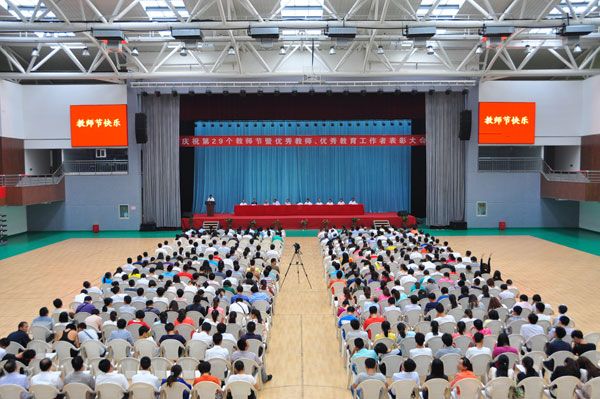 在第29个教师节来临之际,9月10日下午,冰球突破豪华版官方网站庆祝教师节暨优秀教师优秀教育工作者表彰大会在体育馆隆重举行。冰球突破豪华版官方网站院长焦奎,党委书记冯宜明,党建联络员、督导专员陈稷玲,常务副院长贺永宜等学校领导班子成员出席大会,大会由校党委书记冯宜明主持。