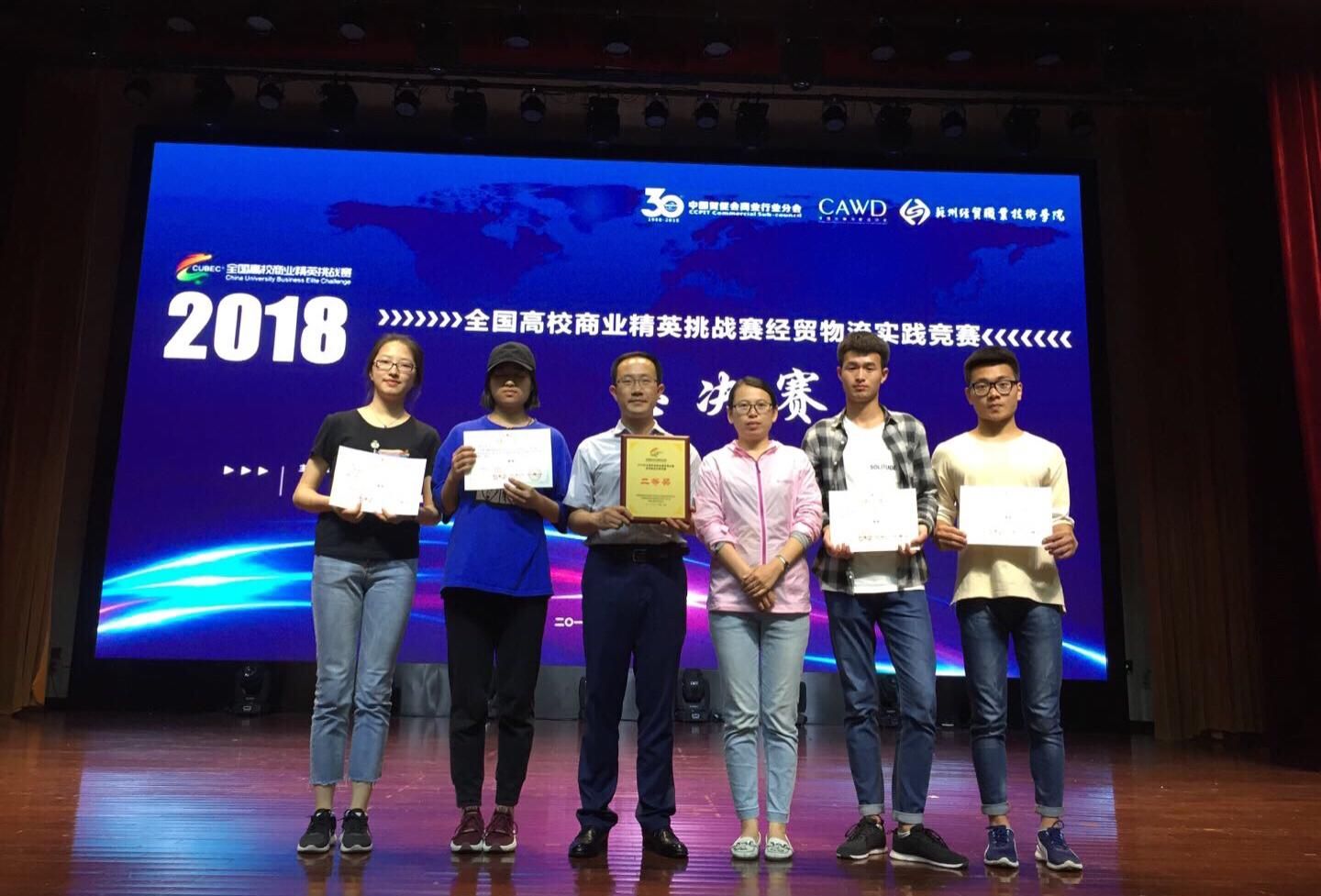 2018年6月1-3日,全国高校商业精英挑战赛经贸物流实践竞赛总决赛于江苏省苏州市举行,来自全国各地的105支队伍参加本次竞赛。经过激烈角逐,冰球官网管理学院何浩、王海鑫、李之琦、贾东晨组成的“浩气星辰”团队取得了二等奖的优异成绩。