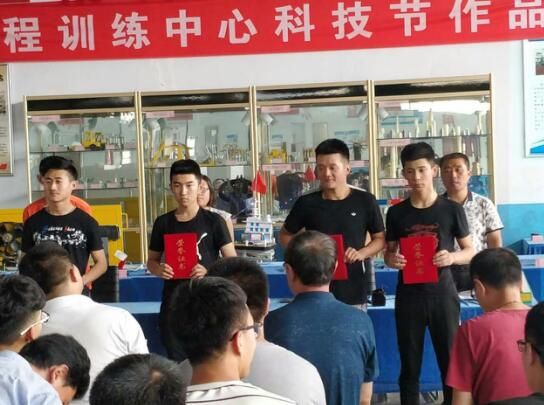 本届科技节集中展示了车载遥控电动举升机、多功能切割机、航空母舰、水面玻璃墙等19件学生作品,这些作品涵盖机械创新、数控加工、汽车维修、钳工技术、焊接等多个领域。经评委打分评出一等奖作品2件、二等奖作品2件、三等奖作品4件,优秀奖作品11件,孙优东、武良可、刘兰金、董喜君4位老师被评为优秀指导教师。