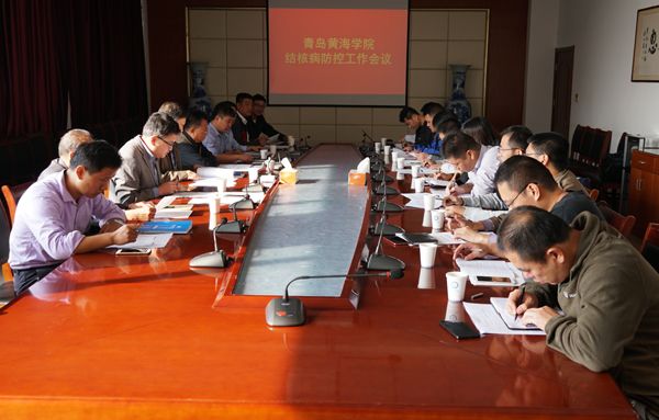 会议共有三项议程:一是后勤部部长殷锡贤宣读《关于成立结核病防控工作领导小组的通知》;《通知》中明确了学校结核病防控领导小组,领导小组下设办公室,办公室设在后勤部。二是后勤保障部部长助理杨健根据《青岛市学校结核病防控工作达标方案》,部署学校结核病防控工作达标项目分工;分别从综合管理、防控工作、健康教育三个方面细化了《方案》,具体量化了11项指标内容;通过对11项指标的具体量化打分,直观的体现了结核病防控工作的质效;通过制做各类登记表,确保了防控工作的高效落实。三是校长王渊明做了讲话并提出相关要求。王校长在讲话中要求:(一)进一步落实责任,形成防控工作合力(1)要加强组织领导(2)二要落实防控责任(二)进一步强化措施,防止聚集性疫情发生(1)主动发现患者(2)科学进行诊疗管理(3)强化健康教育(4)加强环境卫生(5)加强舆情监控(三)强化监督检查,严肃问责管理。王校长的讲话为结核病防控工作理清思路,指明方向,明确工作重点。