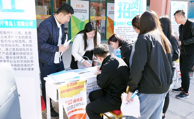 会上,青岛科硕新材料科技有限公司、青岛惠博士生物科技有限公司、青岛德通纳米科技有限公司、青岛耐克森橡胶有限公司等17家企业,纷纷拿出自己公司的宣传材料,悬挂好招聘海报,向到会的同学们热情的介绍公司。同学们走到自己感兴趣的企业摊位前浏览着招聘海报上的招聘信息,对自己心仪的工作岗位,向企业人员仔细询问有关待遇、工作时间、工作内容等方面的问题。