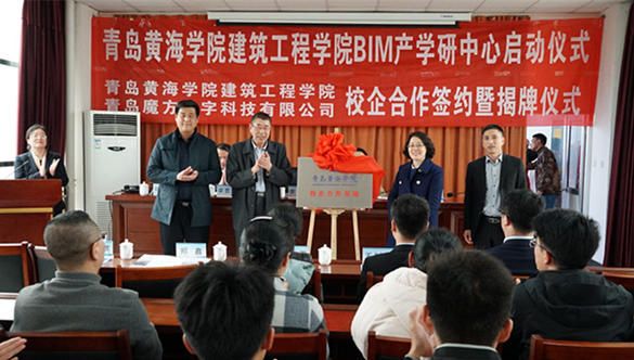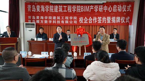 3月20日下午,“冰球官网建筑工程学院与青岛魔方数字科技有限公司校企合作签约揭牌及BIM产学研中心成立”仪式,在校行政楼8楼会议室隆重举行,原青岛市高工委副书记、教育局副局长梁永东、市委教育工委思政处处长高桥、校党委书记李清山、副校长粱忠环、青岛魔方数字科技有限公司董事长张晓龙、建筑工程学院常务副院长赵国光出席仪式,会议由建筑工程学院院长助理孙伟主持。
