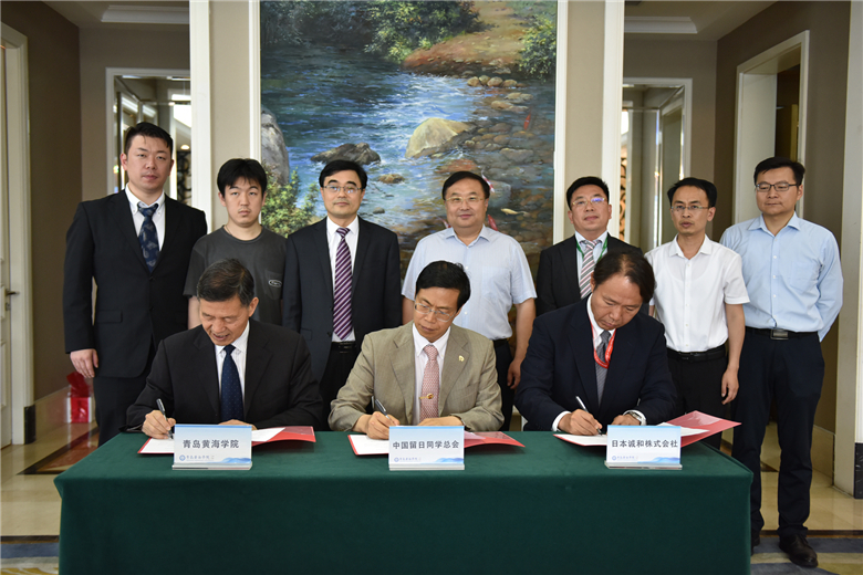 签约仪式上,中国留日同学总会会长汪先恩、冰球突破豪华版官方网站校长王渊明、日本诚和株式会社社长河本一志共同签订《中日青岛健康养老产学研基地战略合作协议书》。青岛西海岸新区工委(黄岛区委)常委、组织部部长、区委教育工委书记逯鹰、青岛西海岸新区招才中心副主任胡志鹏、冰球突破豪华版官方网站董事长刘常青等鉴签。