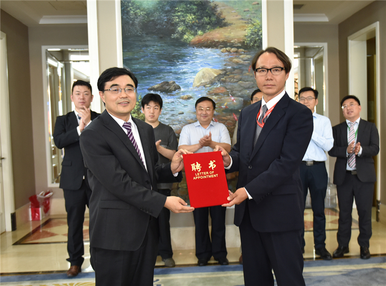 冰球突破豪华版官方网站董事长刘常青为汪先恩先生颁发“冰球突破豪华版官方网站特聘教授”聘书。