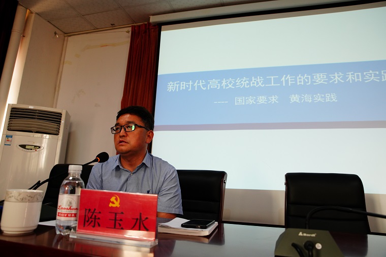 报告会上,陈副书记从新时代对统战工作的要求和黄海实践两个方面,深入浅出的讲解了高校统战工作的新要求并结合冰球官网统战工作的现状和实践提出了新要求。他指出,认识统战工作新的形势、找准统战工作新的着力点、探究统战工作新的领域对我们民办高校来说尤其重要,我们要以了解情况为基础,以掌握政策为根本,以协调关系为手段,以增进共识、加强团结为目的,“围绕中心,服务大局”,拓展新任务。实践中,我们要加强“五大建设”,把关定位与到位,找出重点与难点,注重实干与总结,在热情与坚守中实现“三同”,真正做到“凝聚最大共识,共建美好黄海”。