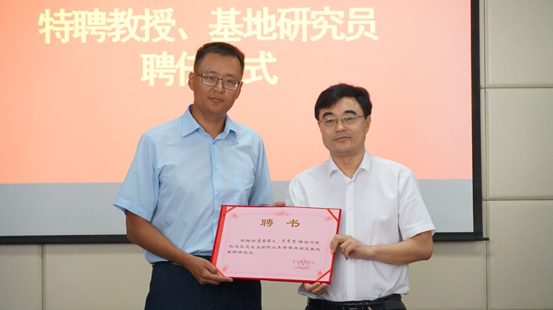 会上,董事长刘常青为鲍·巴扎罗夫院士颁发马克思主义学院特聘教授、山东省马克思主义重点研究基地客座研究员聘书;为策·成吉思研究员、宝音满达夫博士颁发马克思主义学院兼职教授、山东省马克思主义重点研究基地兼职研究员聘书并合影留念。