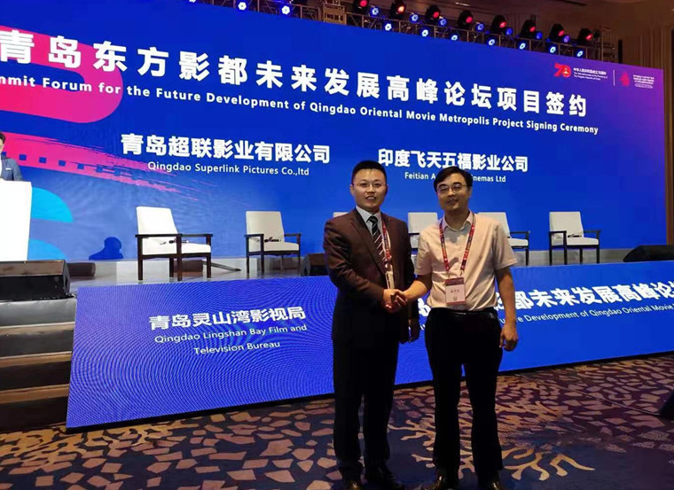 8月28日下午,在青岛东方影都未来发展高峰论坛上,刘董事长与青岛超联影视有限公司及印度飞天五福影业公司的相关领导就影视产业发展问题进行了深度交流会谈,就双方感兴趣的项目进行协商。