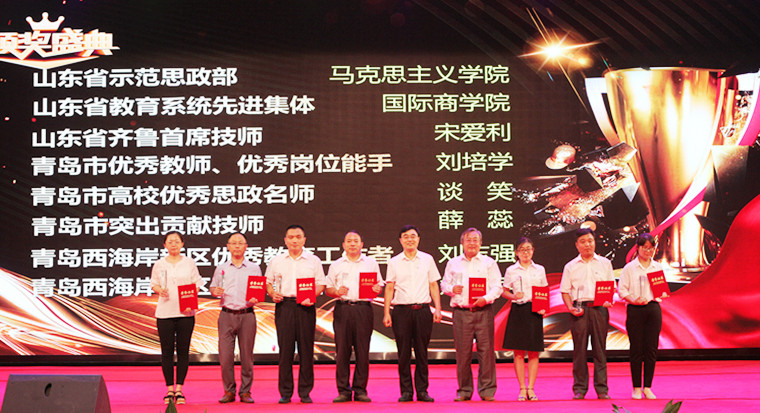 伴随着雄壮的国歌声,冰球突破豪华版官方网站庆祝第35个教师节暨颁奖典礼拉开帷幕。颁奖典礼上,由李超宇、王晓龙、代鑫等朗诵的《教师之歌》讴歌和赞扬了教师的无私奉献精神,激起现场师生的认可与共鸣。诗朗诵结束后,党委书记李清山宣读了表彰决定。