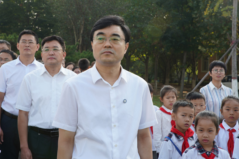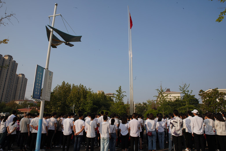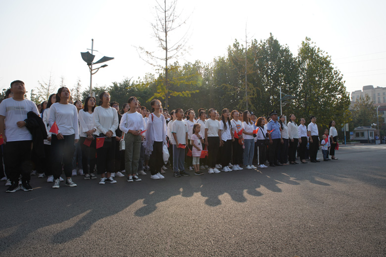 早8点整,伴随着雄壮的《义勇军进行曲》,鲜艳的五星红旗冉冉升起,全体师生挺拔肃立,庄严的国歌声瞬间在校园上空回荡。