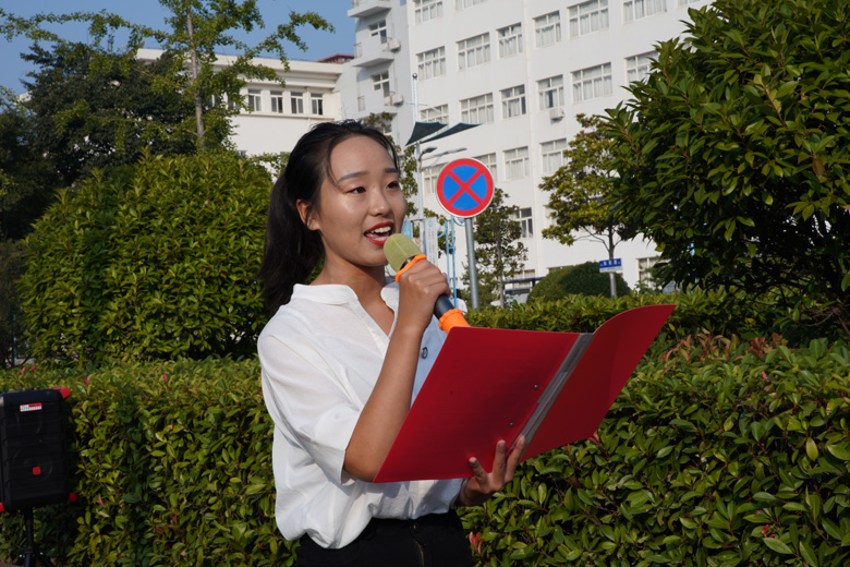 来自国际商学院的贾瑞雪同学进行国旗下的演讲。她号召当代大学生,在这个崛起的时代里,渴望去拼搏、奋斗,去为祖国的发展与进步做出自己义不容辞的贡献。