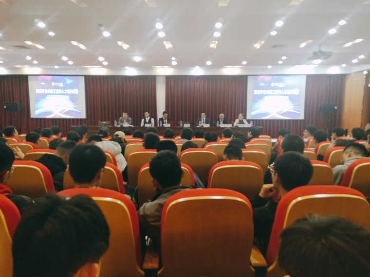 下午的项目启动仪式暨宣讲会由国际交流中心副主任薛海勤主持。智能制造学院骨干教师、学生代表200余人出席了启动仪式。首先由智能制造学院行政副院长孙丰鑫向在座师生作了项目动员,ALFATECH海外人才支援事业部长小野丰向师生致辞。接着分别由青岛国合项目经理刘策向学生做了项目流程、招聘优势介绍;ALFATECH海外人才支援事业项目经理佐藤先生向学生做了工程师岗位技术目标的解读。佐藤先生用风趣幽默的语言向大家介绍了株式会社ALFATECH的基本情况及人才需求,并从一个工程师入职的1-2年、3-5年、5-8年后分别应达到什么目标,给学生做了一个完整的工程师成长之路的规划。整场报告会佐藤先生不时与同学们进行热情互动,同学们聚精会神地参与到分享当中。