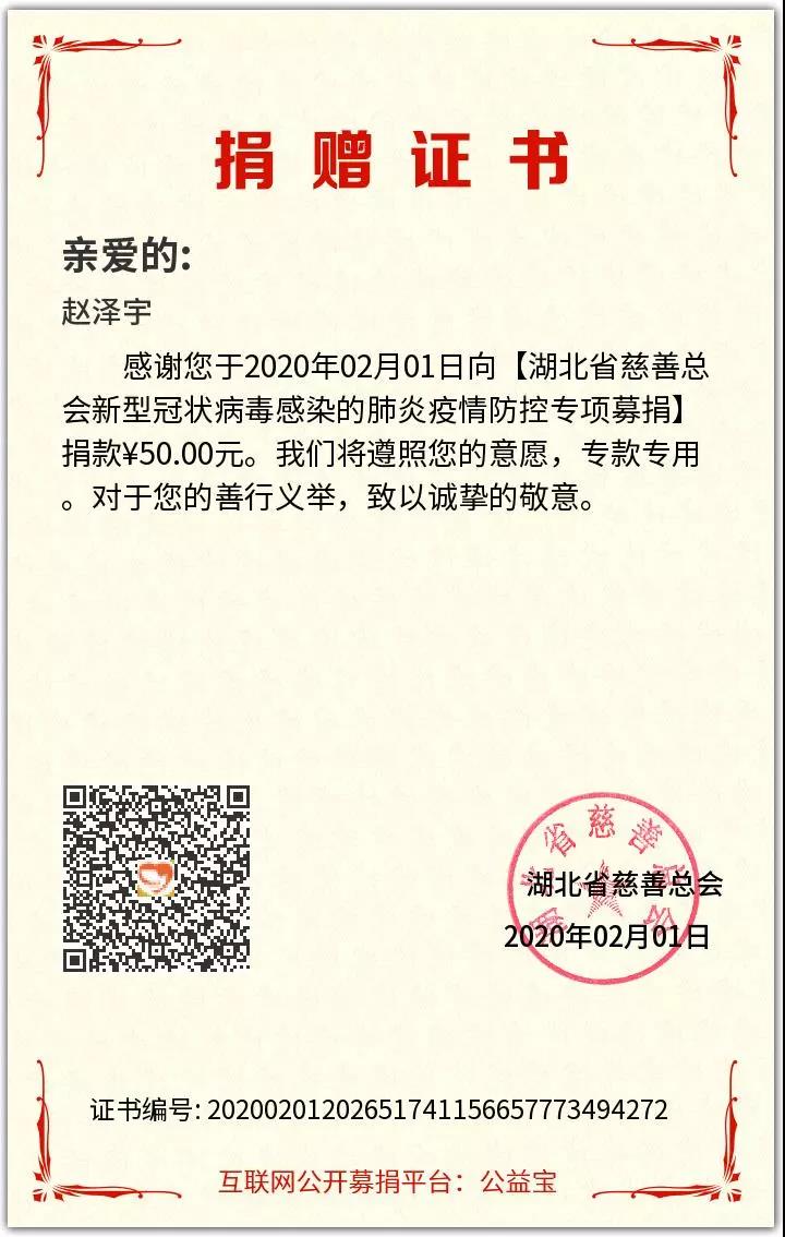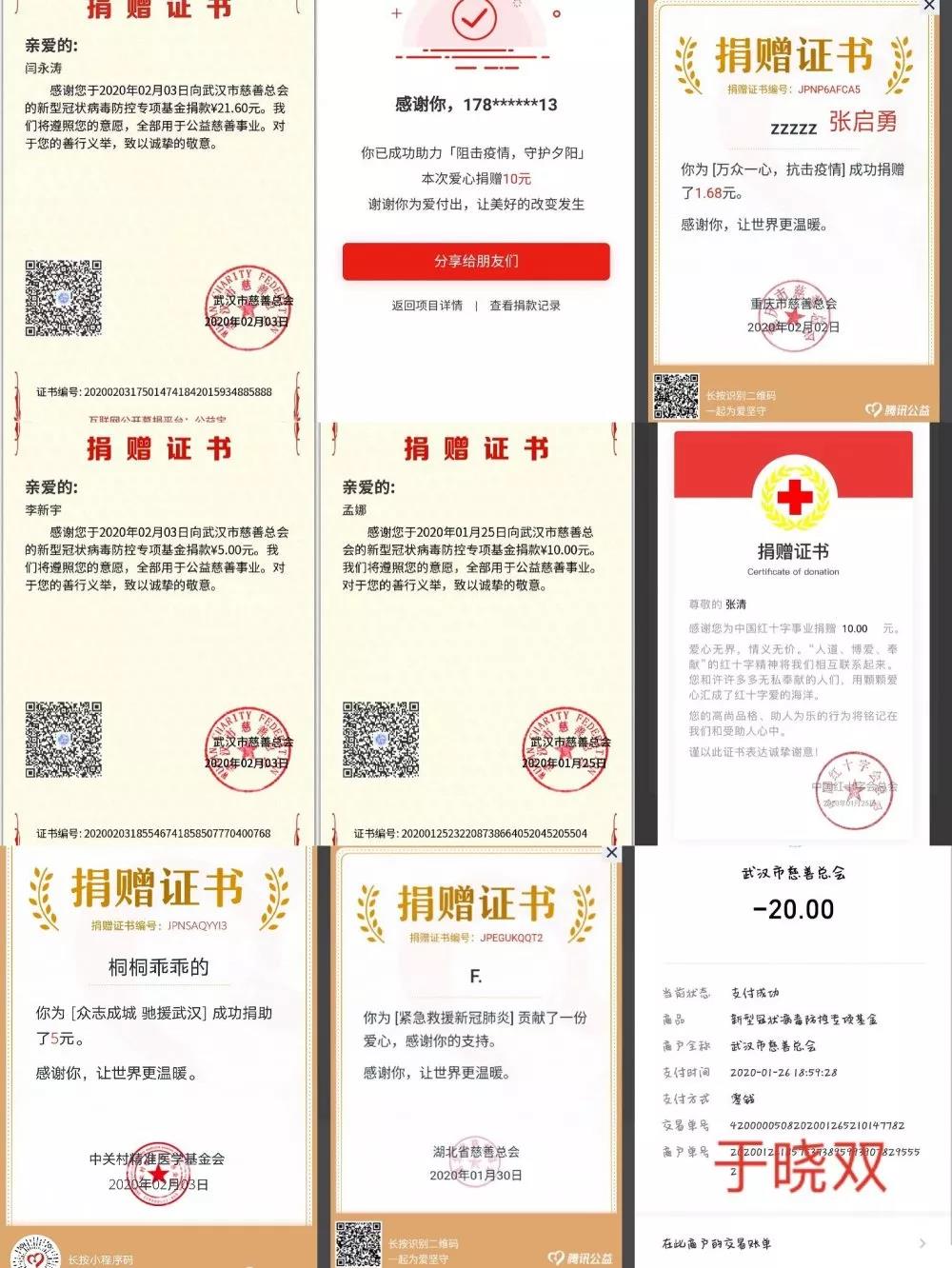 在网上真的看到了很多很多的物资的求助,看得真的很难受,本来想直接捐物资,但是的确不知道怎么选购医用品,是不是是否符合标准,就直接捐款了。武汉的这次疫情并不只是武汉在过关,是全国人民一起过关,我不是武汉人,不能真正的体会到在武汉的那种感觉,只是希望自己能够出一份力,虽然不多,但是希望武汉能够快点度过这次疫情,也希望国家能够度过这次难关。