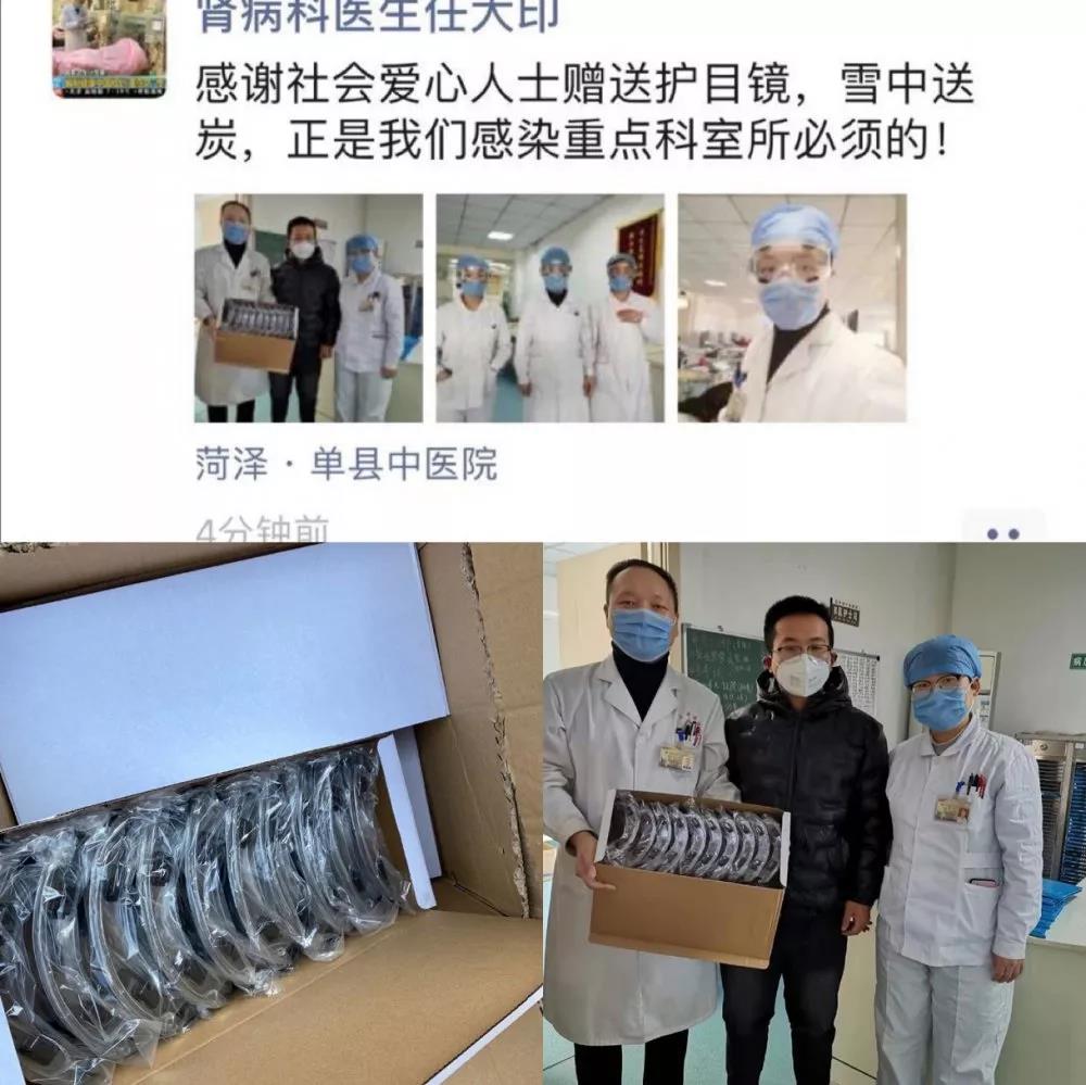 2020年1月30日,艺术学院19级绘画本科2班的李天前往菏泽单县中医院和单县中心医院捐赠一批护目镜,在防疫物资急需的情况下,李天同学及时援助,为医院及时援助,不仅了解了燃眉之急,也增强了单县各医院打赢这场防疫阻击战的信心!