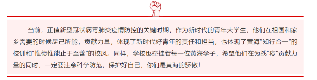 除了参加志愿服务,黄海学子还通过捐款捐物、制作防疫视频短片、创作漫画等各种方式为抗击疫情贡献智慧和力量。