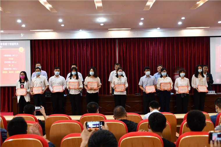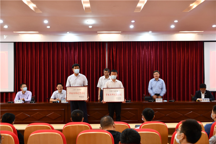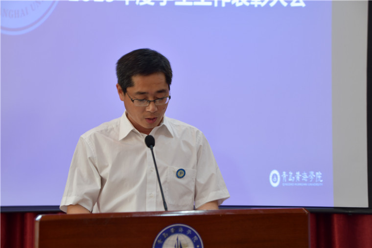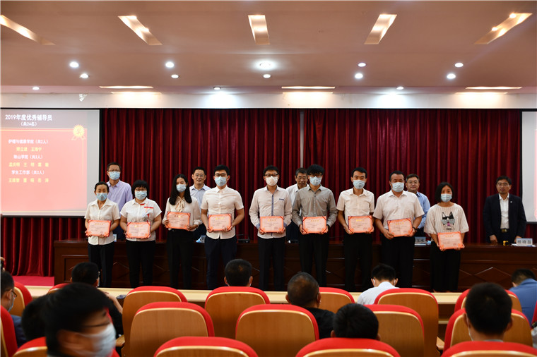 会上,学生工作部部长杨晓磊宣读2019年度学生工作校级先进集体和优秀个人表彰决定,与会领导一同为优秀学院、2019年度“感动黄海”优秀辅导员、优秀辅导员、星级文明宿舍创建十佳辅导员和星级示范公寓等获奖集体和个人颁发了荣誉。