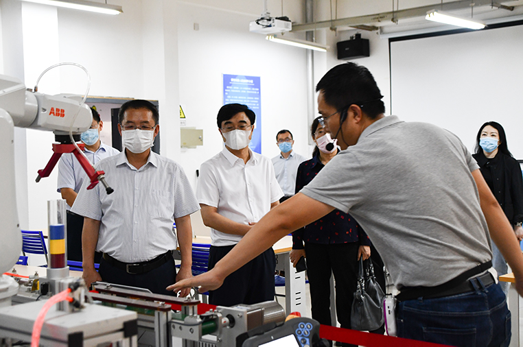 曲波局长一行首先来到冰球官网FANUC机器人实训中心、大学生创新创业孵化基地、雷锋纪念馆、博物馆等场所进行了参观考察。