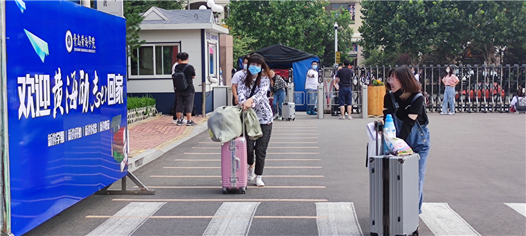 按照学校制定的分批返校计划,学生们分批有序返校。经过身份识别(健康绿码+学生证)、行李消毒、体温检测、门禁系统识别等严格的返校检查程序,黄海学子终于回到了温馨的校园。