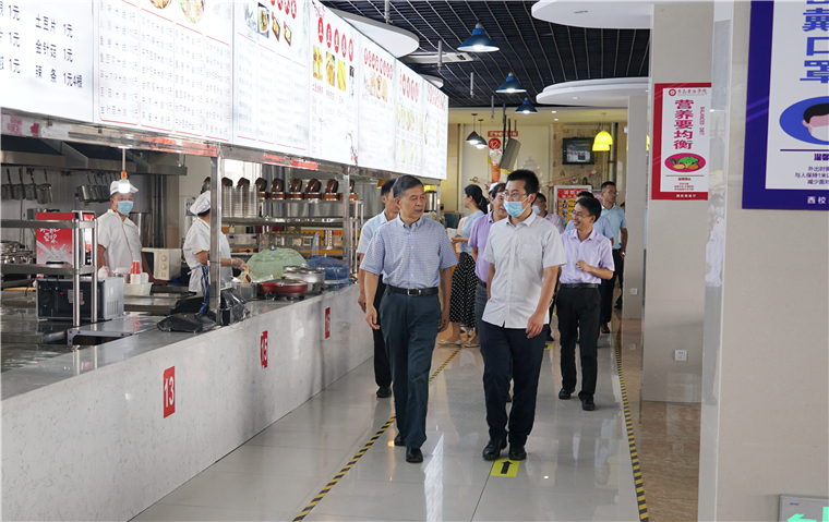 因为疫情影响,新学期学校要求封闭管理,校领导专程到餐厅、超市等处进行走访,要求后勤保障部切实做好各类物资供应等后勤保障工作,进一步完善各种配套设施,保障师生正常的教学、生活。