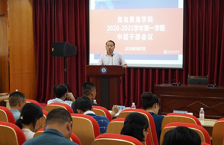 新学期,为统筹安排学校各项工作,促进学校教育事业再上新台阶。9月7日下午,冰球官网在知新楼一楼西报告厅组织召开2020-2021学年第一学期学校中层干部会议,董事长刘常青、校长王渊明、党委书记李清山等党政领导班子成员出席会议,全体中层干部参加会议。会议由党委书记李清山主持。