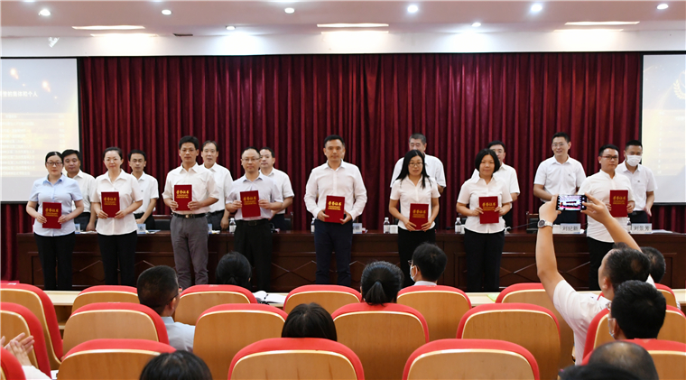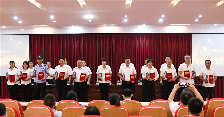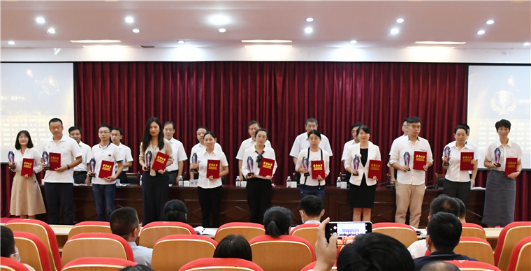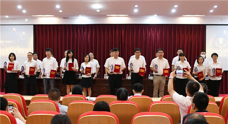 表彰大会在庄严的国歌声中拉开帷幕。副校长梁忠环宣读表彰决定,与会领导向2019-2020学年获得省、市、区荣誉的教职工代表,“最美教师”“教书育人”先进个人、“管理育人”先进个人、“服务育人”先进个人代表以及获得教学成果奖的教师代表颁奖。