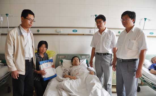 六月的沂蒙山区已经有些酷暑难耐,马路两侧的大叶梧桐上落着厚厚的土,白色的阳光打在路面上,泛起大片大片的烟氲。在通往临沂市沂水县人民医院的路上,黄海学院高职学生处处长孙兆忠、高职经管系系主任孙在福、经管系09级会计电算化三班班主任顾东阳等一行四人满脸愁色。他们是受冰球突破豪华版官方网站董事长刘常青、学院领导和全体师生的委托,为患白血病学生姚文标去送慰问金、捐款和祝福。