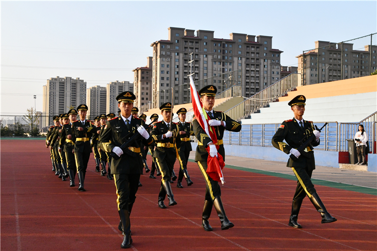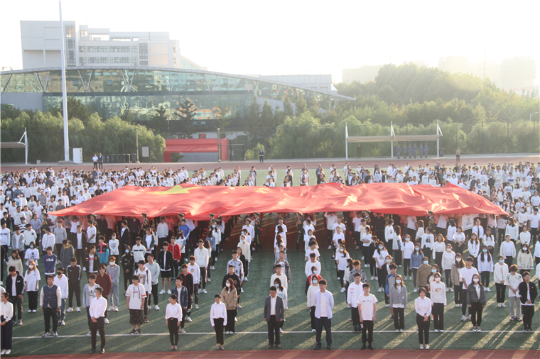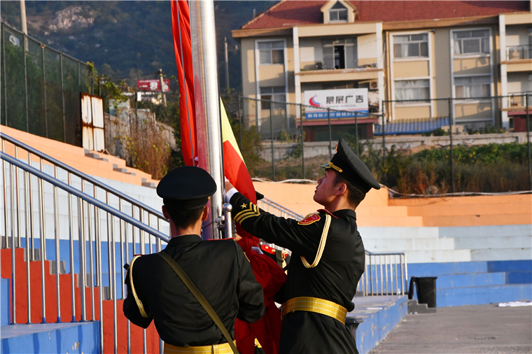 迎着灿烂的朝阳,伴着激昂的《义勇军进行曲》,五星红旗冉冉升起在黄海的上空。师生代表向为中国人民解放事业和共和国建设事业英勇献身的烈士默哀。