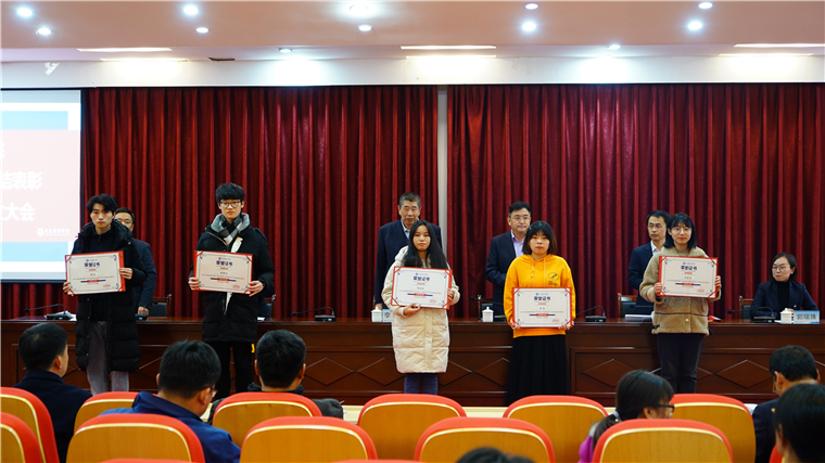 校长助理孟广东宣读《关于表彰2019年度宣传思想文化工作先进集体、优秀新媒体平台、网站管理建设先进单位、宣传思想文化工作先进个人、优秀学生记者的决定》,与会领导为获奖集体和个人颁奖。