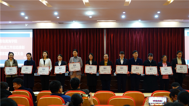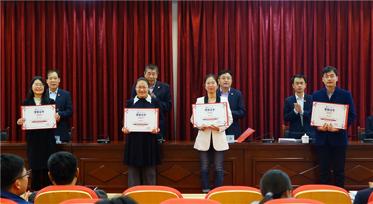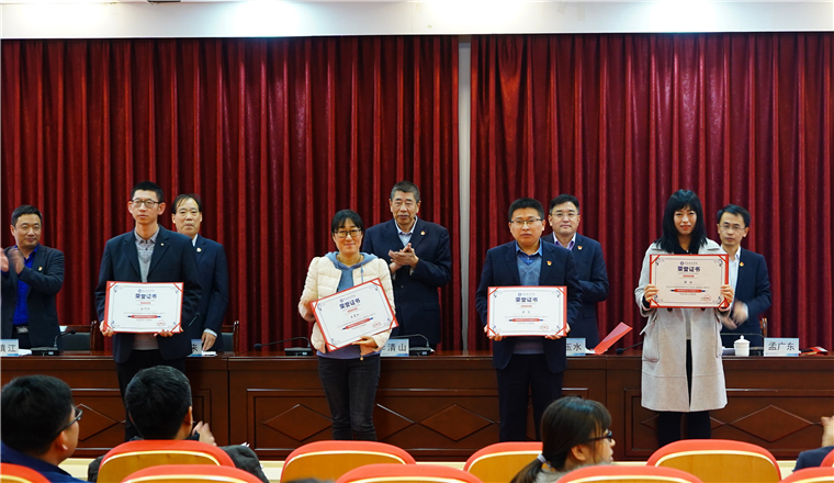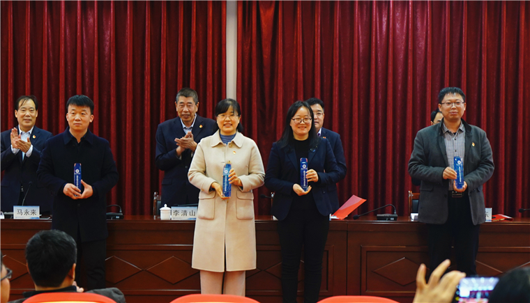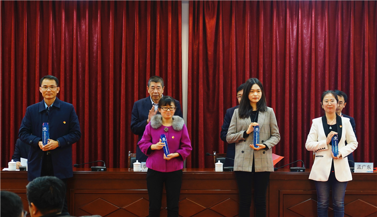 党委副书记陈玉水宣读《关于表彰2019年度统战工作先进集体和先进个人的决定》,与会领导为获奖单位和个人颁奖。